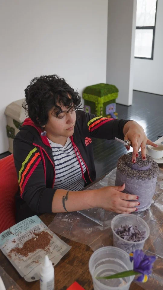 Brianna L. Hernández (b. 1991) is a Chicana artist, curator, educator, and death doula guided by socially engaged practices. In the studio, she creates multi-media installations focused on end-of-life care, grief, and mourning rituals based on lived experience, cultural research, and collaborations with peers including death education workshops. In developing as an artist and creative professional Brianna credits her late mother, Sylvia D. Hernández, as her most significant mentor and inspiration for the creativity, resilience, and compassion she demonstrated throughout her life.